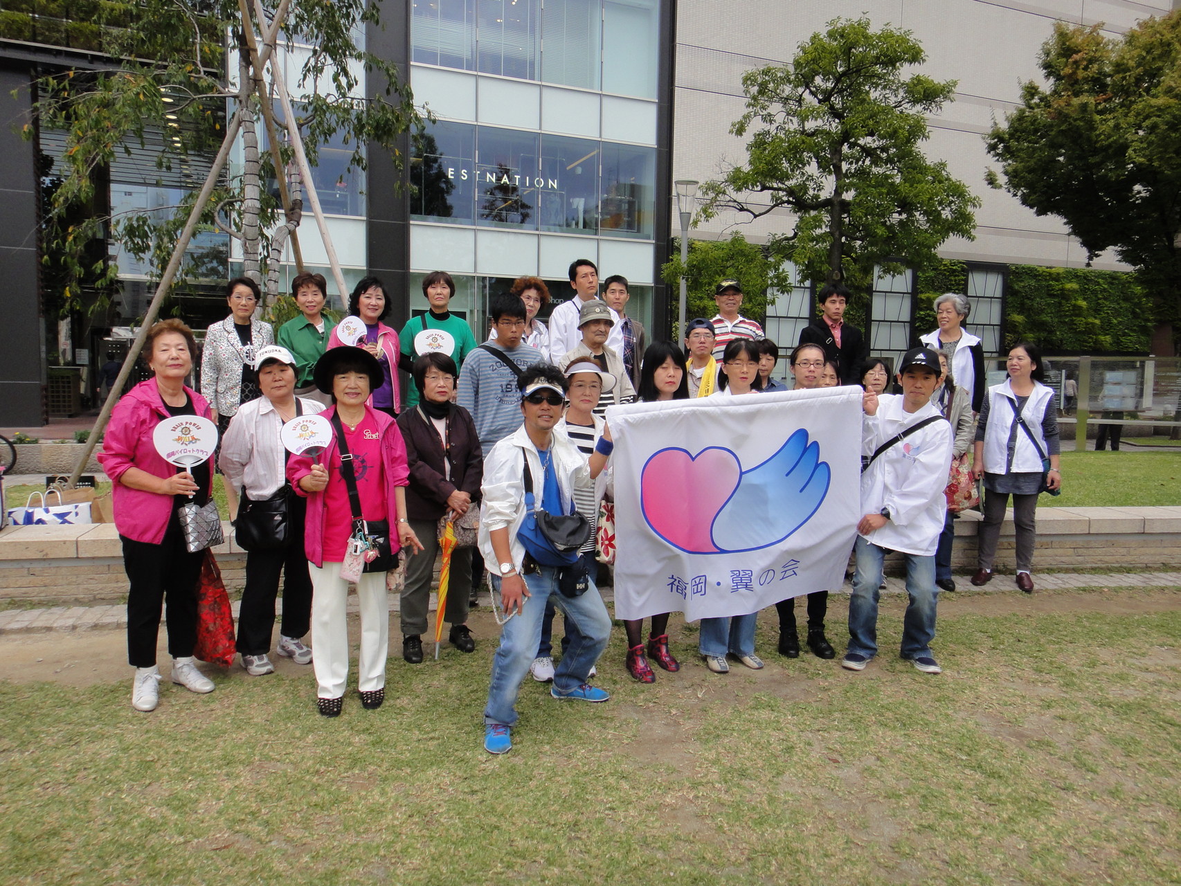 スペシャルオリンピックス日本・大阪のアスリートとファミリー、サポーターの皆さん、留学生、一般の方々(総勢約150名)で、さわやかに楽しく中之島公園を歩きました。
